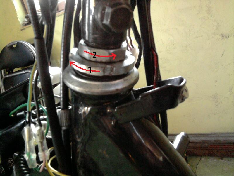 Podjeżdżamy ogarem pod ścianę, przednie koło jest dociśnięte do ściany. Łapiemy za kierownicę(wciskamy hamulec) i pchamy w kierunku ściany i tak kilka razy. Jeżeli wyczujemy delikatny luz należy to skorygować.